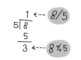 a%b와 같이 작성하면, a를 b로 나눈 나머지(remainder)를 계산해준다.