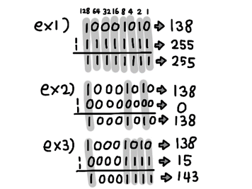 두 정수를 비트단위(bitwise)로 or 계산을 수행한 결과를 10진수로 출력한다.